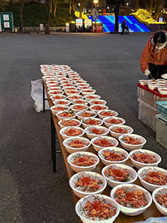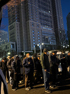 おかげさまで衣類等は順調に集まっています。それを毎週仕分け作業をし、日曜日に路上で提供をしています。あまりにも人が殺到し、また独り占めする人もいるため、配布方法を変え、寒い中で大変ですが、並んで人数制限をした中で必要なものを自分で選んでもらう方法にしました。皆、この「越年公園スタイル」のルール変更に従ってくれています。「必要なものを必要な人へ」が物資提供の基本ですので、そのために工夫をしながら続けて行きたいと思います。