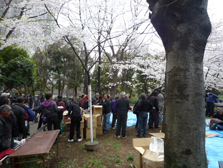 ホームレス自立支援法延長問題を抱える本年、いかに仲間の強い団結を作りだすのかが課題となっています。新宿の仲間はまだまだ元気であり、屋根と仕事を求め一致団結する姿を再度世に訴えるためにも、仲間のさまざまなつながりが重要となって来ます。テントも少なくなり、日頃はバラバラに生活せざるを得ない新宿の中、この日ばかりは仲間がつどい、酒を酌み交わし、楽しく春を祝う日にしていきたいと思います。