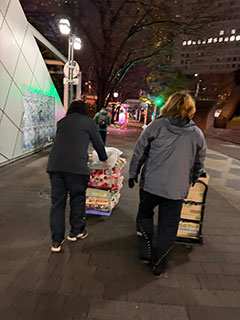 現場では10月から 毛布配布を始め、既に100枚以上を配布しています。寒い夜、凍えて亡くならないよう、一人ひとりに声をかけ、必要であれば毛布をかぶせ、暖を取ってもらっています。